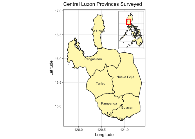 ggtitle("Central Luzon Provinces Surveyed") +