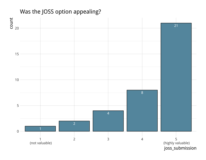 At the completion of each review, the editors invite package authors to submit either a long-form blog post aimed at a general reader, or a shorter technical note. Most authors who wrote posts reported greater visibility for their package and some also enjoyed reflecting on the development process.