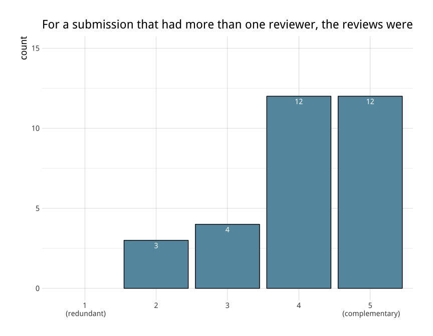 Some respondents noted the challenge of providing an objective review under a fully open system, and one suggestion was to consider a single blinded system in order to allow reviewers (especially more early career folks) to provide critical comments without fear of retaliation.