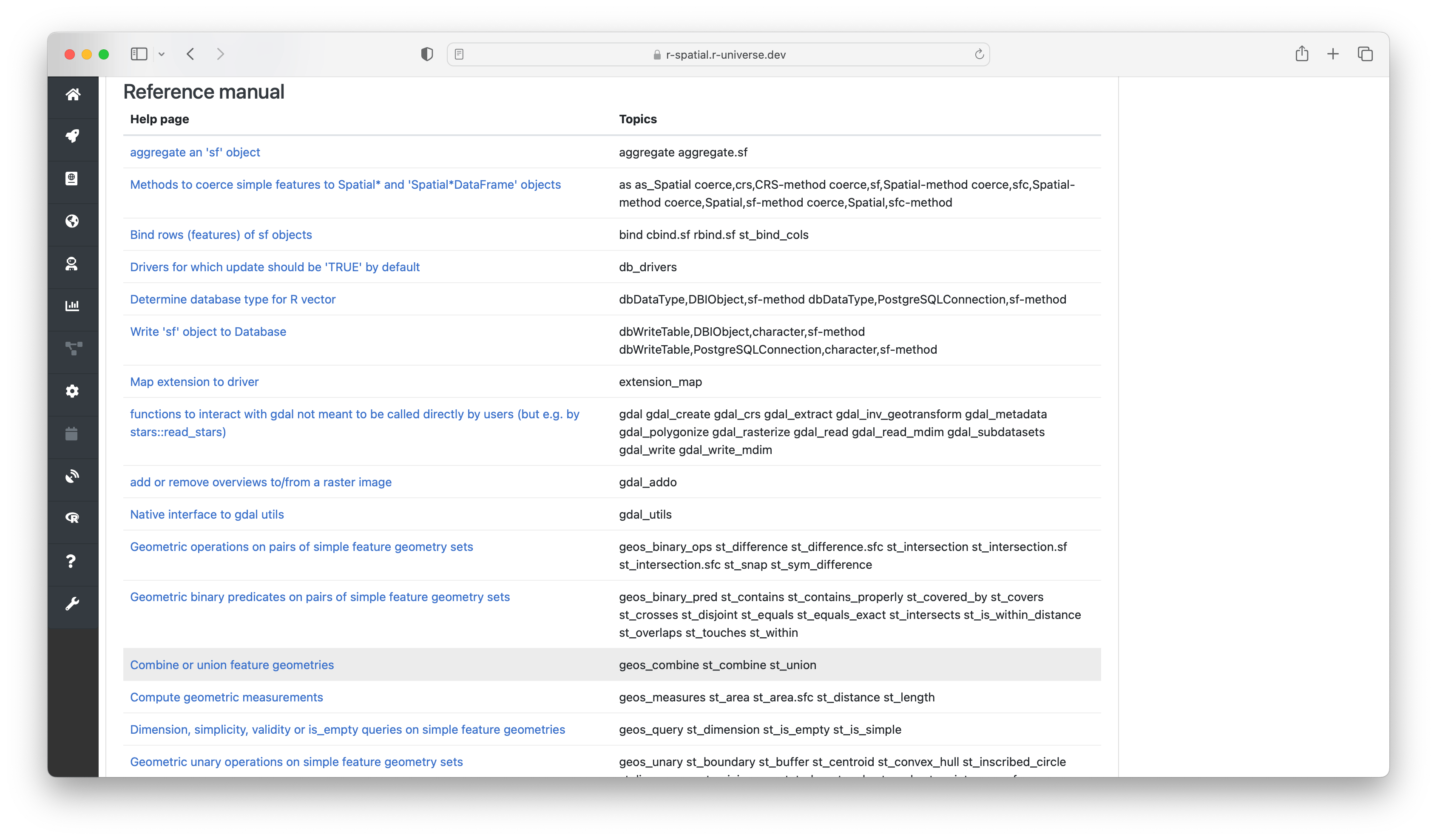 To let you start using packages as quickly as possible, r-universe renders all available documentation and presents this as clear and concisely as possible on the homepage.